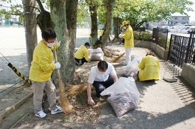 今日は、本校の応援団「城東33グループ」の活動日です。生徒たちが少しでも良い環境で勉強や部活動ができるようにと、月に一度集まり、校舎内外の清掃活動等を行ってくれています。今回は、校庭南側のフェンス周辺の落ち葉拾いを中心に作業を行いました。本当に感謝です!