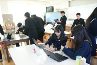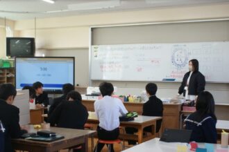 3年家庭科の公開授業がありました。保育実習で使用するおもちゃづくりでした。安全・安心で、ゲーム性のあるおもちゃにするために必要な工夫を考える授業でした。各グループが工夫してつくっているおもちゃのプレテストを行い、他のグループから意見をもらい、改善していました。当日が楽しみです。